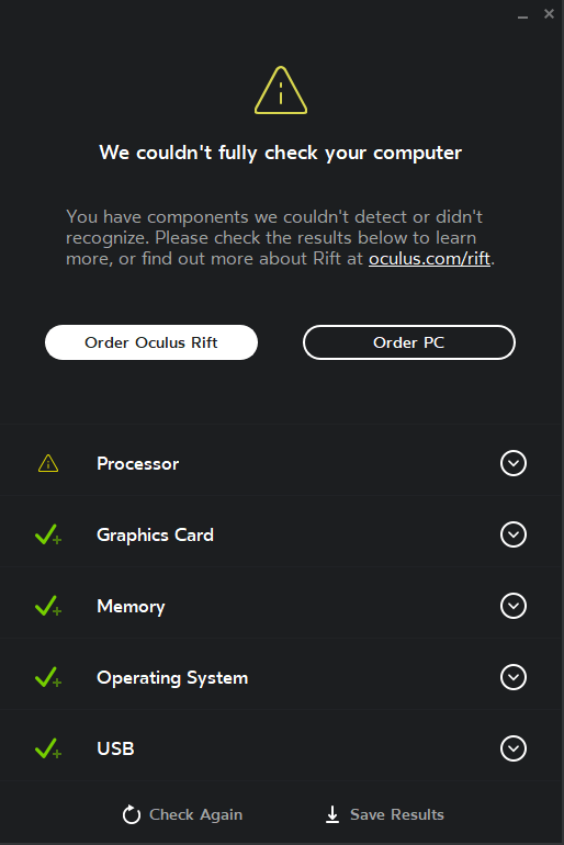 スペック的には問題ないけど念の為、SteamとOculusが配布している診断ツールを実行しました。