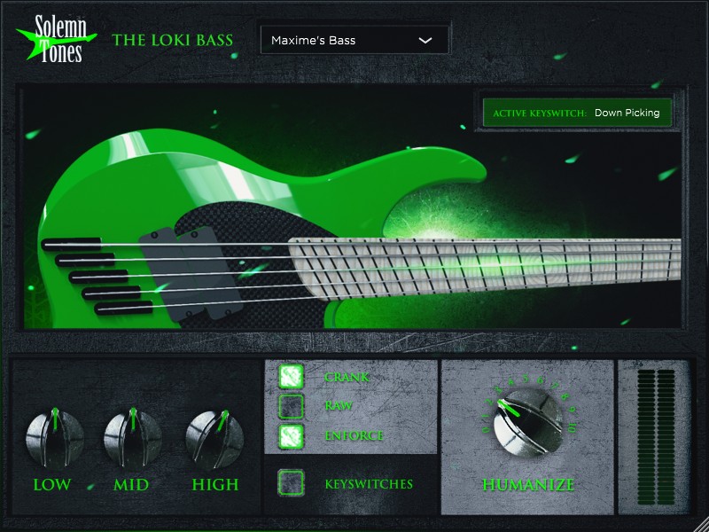 Double Drop C という超低音のチューニングまで対応しているメタル向けなベース音源です。
